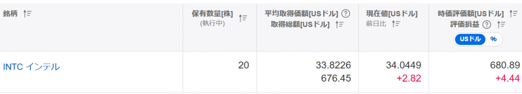 今日はインテル株を19株購入しました!(保有数量 1株 → 20株へ)