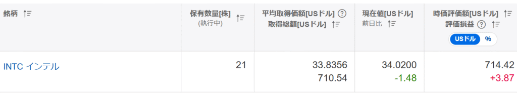 先日に続いて今日もインテル株を購入しました!(保有数量 20株 → 21株へ)