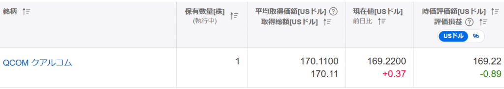 今日はクアルコム株を1株購入!(保有数量 0株 → 1株へ)
